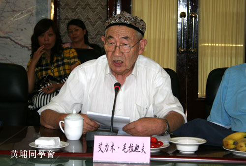 新疆黄埔同学会副会长、石河子联络组组长慈百兴、伊犁联络组副组长毛拉也夫、石河子黄埔同学孙仁嘉在座谈时发言。