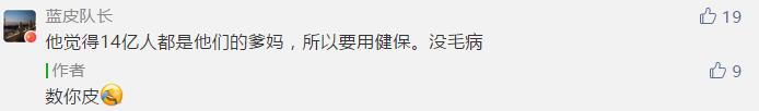 有网友调侃说,你(指绿营人士)咋不说2300万人交的健保让70亿地球人都用了呢?也有网友称,“他(指绿营人士)觉得14亿人都是他们的爹妈,所以要用健保。没毛病”(编辑:高旭)