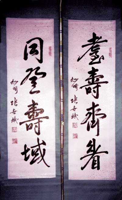 张老身体康健,与老伴相濡以沫70载。在谈到长寿经验时,他说:“自古书家多长寿,只缘寿从笔中来。我退休后书法就是我颐养天年的最高情趣,每天早晨去公园打太极拳,在大地上写字,廿年来坚持不懈。书法是养心,武术是健身,正是身心双收的灵丹妙药。除加强锻炼以外,还要有好的心情,还要知足,知足者长乐,长乐寿自高。书法是我国的文化遗产,现在小学都要求开设书法课了,就是要发扬光大。我还要继续为书法事业做贡献,老有所学、老有所乐”。