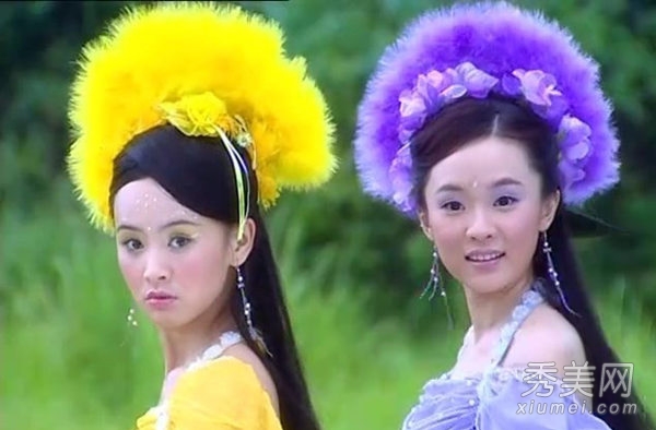 霍思燕也真够悲催的,怎么每次的古装造型都这么惨,短短的眉毛真够有喜感的,全身紫色搭配,还有这紫色眼影,眼睛都变肿了,头顶的紫色毛毛,小编无力吐槽了。