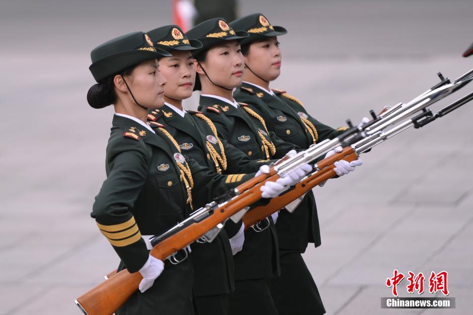 5月15日,中国国家主席习近平在北京人民大会堂东门外广场举行仪式欢迎葡萄牙总统席尔瓦访华。图为解放军三军仪仗队女仪仗兵一展风采。中新社发 廖攀 摄 解放军三军仪仗队女仪仗兵一展风采