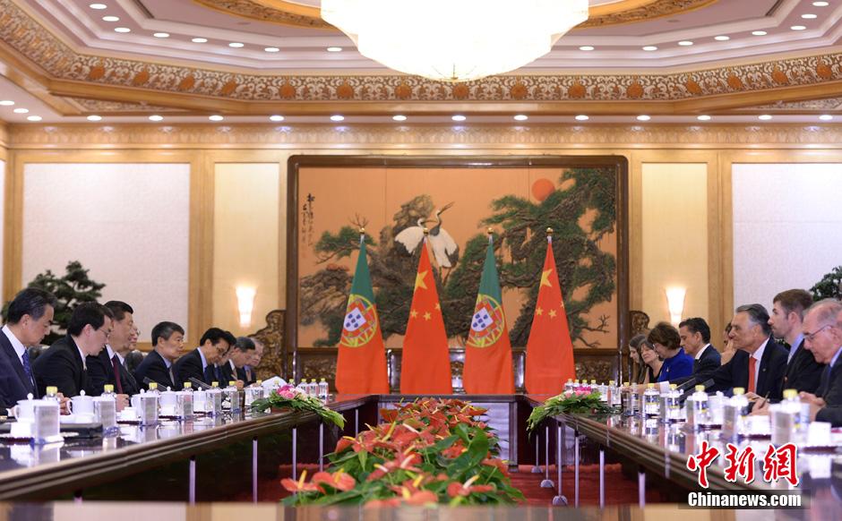 5月15日,中国国家主席习近平在北京人民大会堂同葡萄牙总统席尔瓦举行会谈。两国元首一致同意,立足当前,着眼长远,携手推动中葡全面战略伙伴关系迈上新台阶。 中新社发 廖攀 摄