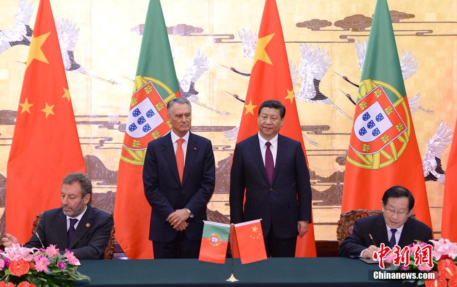 5月15日,中国国家主席习近平在北京人民大会堂与葡萄牙总统席尔瓦出席双边合作文件签字仪式。中新社发 廖攀 摄
