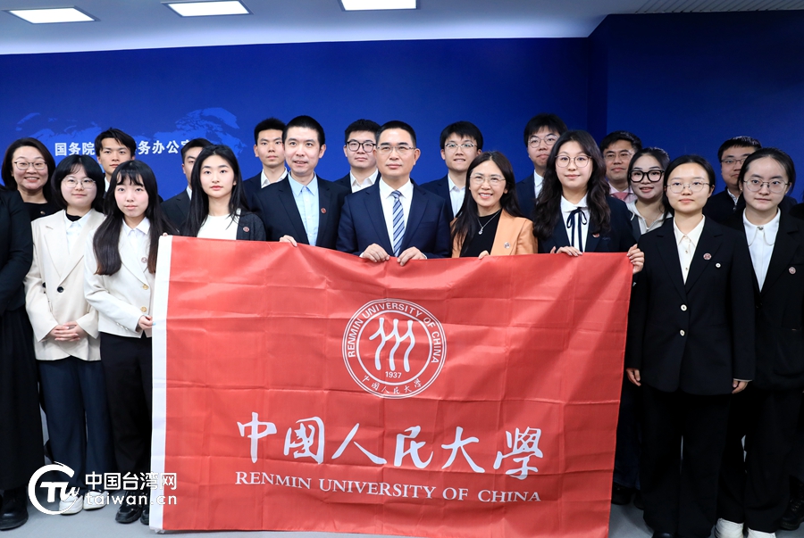 发布会后,陈斌华与前来观摩学习的中国人民大学两岸师生代表合影。(中国台湾网记者 尹赛楠 摄)